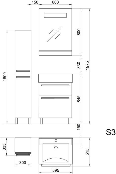 | Оснащение | Зеркало с полочкой / зеркало с подсветкой |