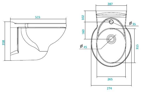 | Тип унитаза | Подвесной |